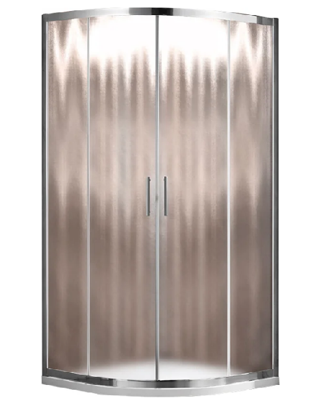 Конструкция обтекаемой формы. Алюминиевый профиль узкий и изящный. Красивый эффект создает зеркальный блеск. Минималистичные ручки на раздвижных дверях дополняют чистоту дизайна. Двери приводятся в движение двойными роликами из нержавеющей стали. Нижние способны отщелкиваться, что удобно для чистки. Главная изюминка модели – стекло. Имеет особую фактуру, уменьшающую степень прозрачности. Поверхность «шиншилла» напоминает роскошный мех, переливающийся на солнце. Рисунок не геометрический, очень деликатный. Выглядит респектабельно, обеспечивает приватность внутри.